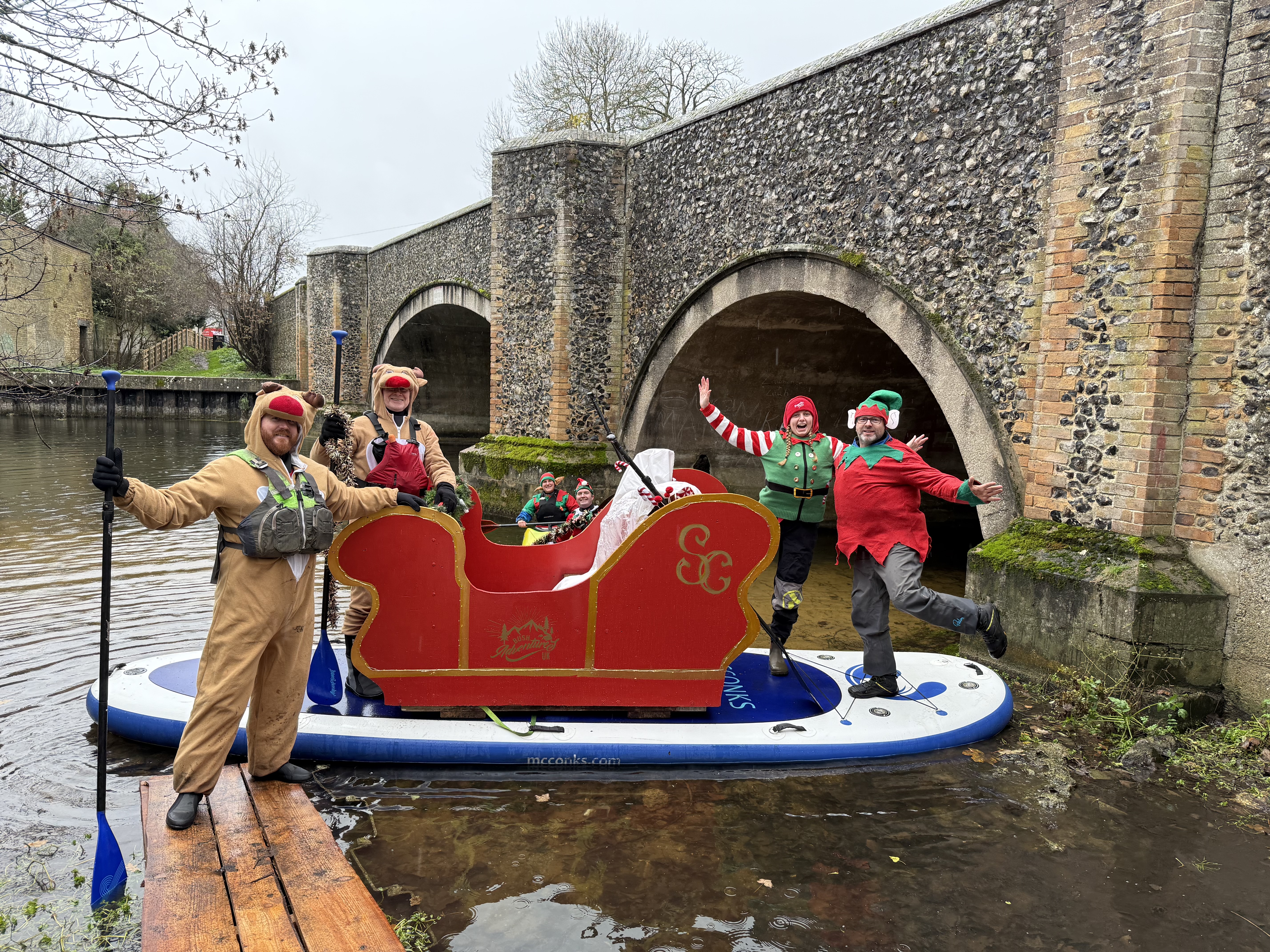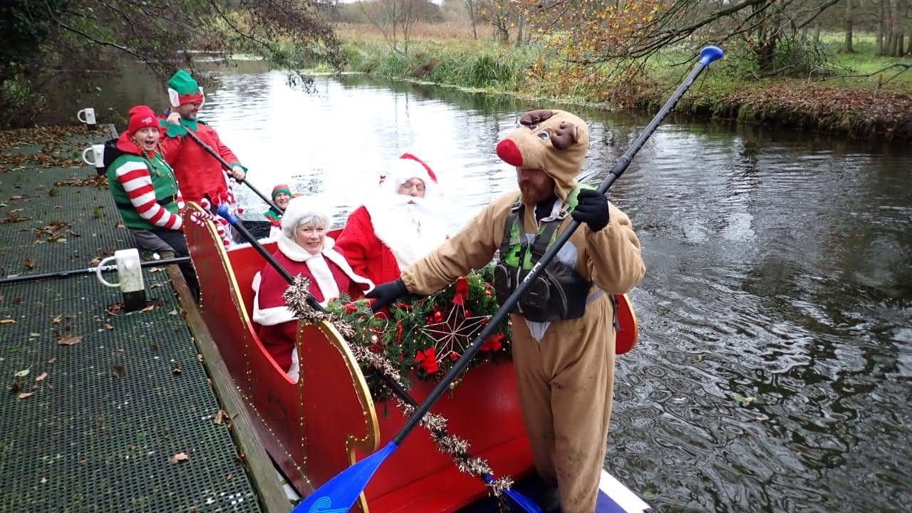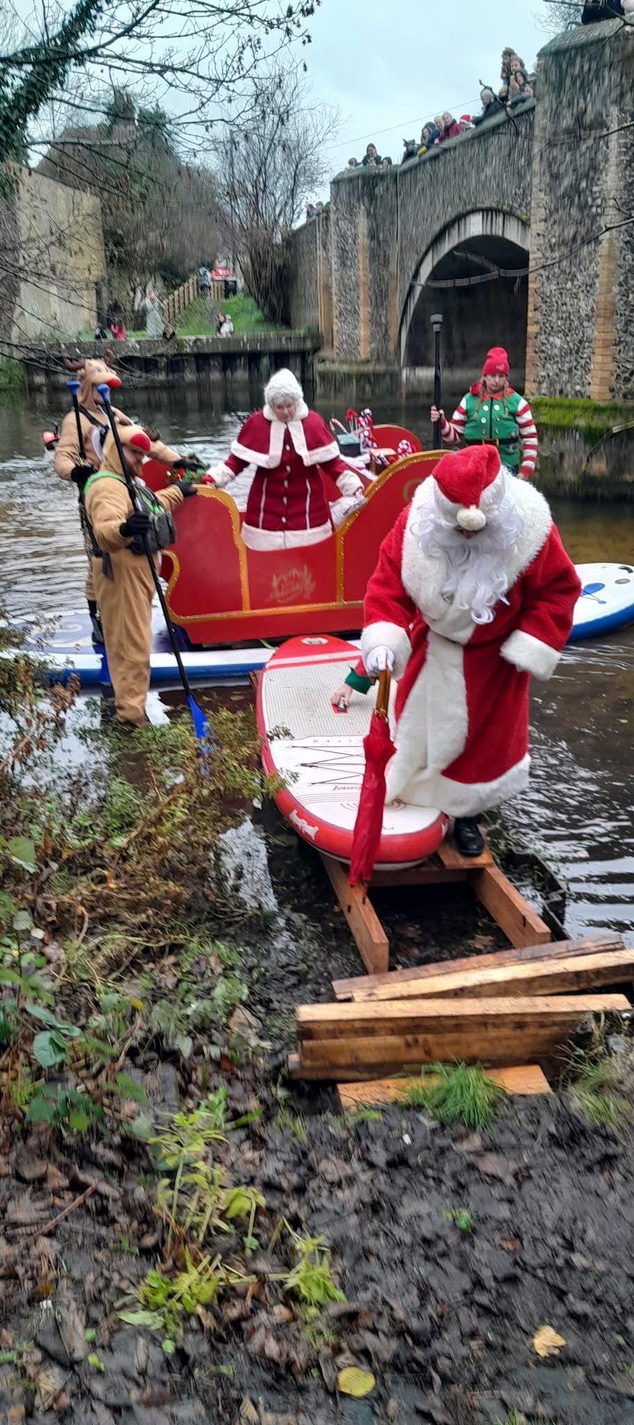 Santa and Mrs Claus arriving by Paddleboard