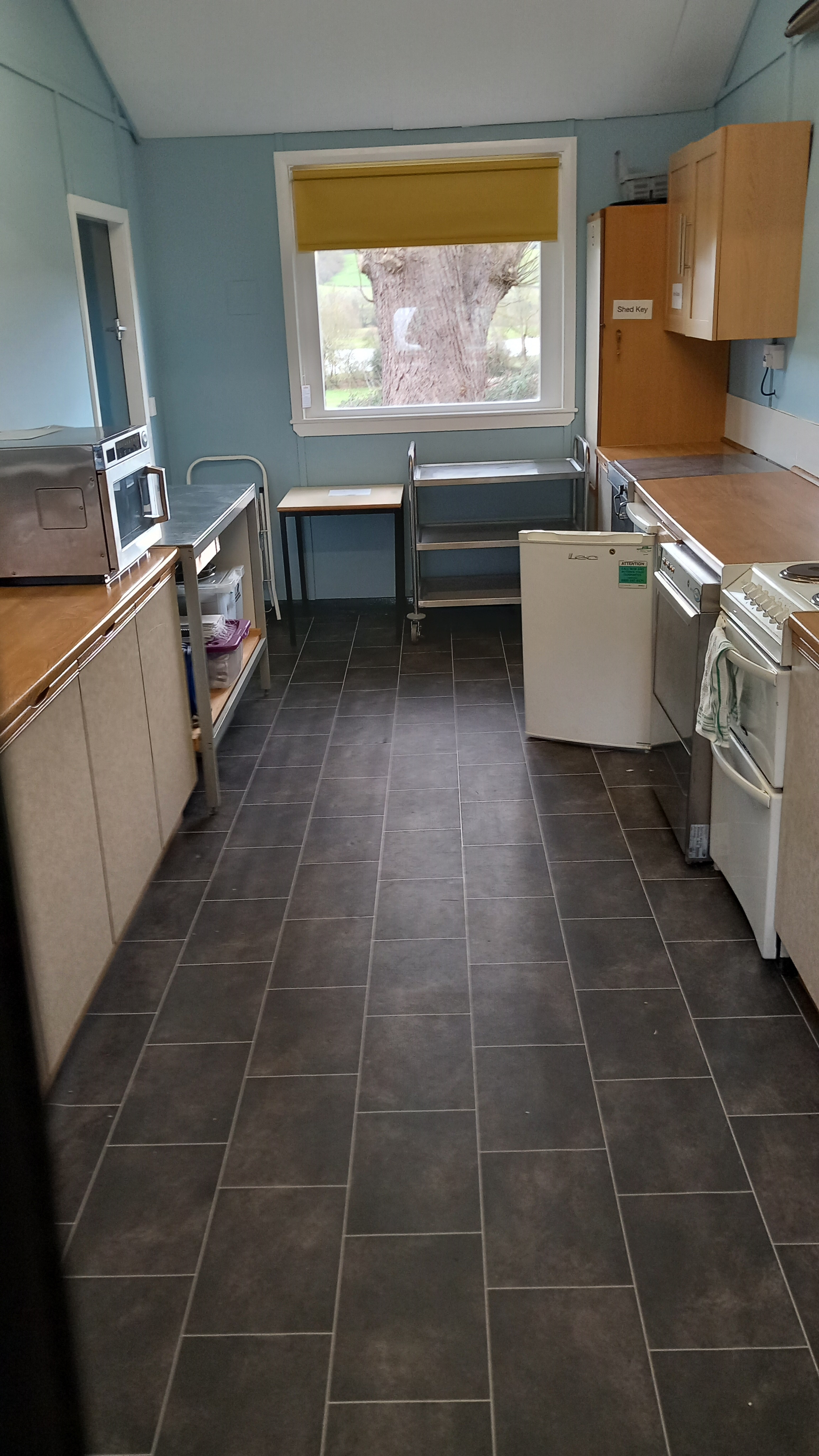 The interior dimensions of the hall are 10 metres x 7.5 metres with a capacity of ~60 people seated (around tables, conference style) and 80 people seated (in rows, lecture style). There is a maximum of 100 people allowed on site at any one time.