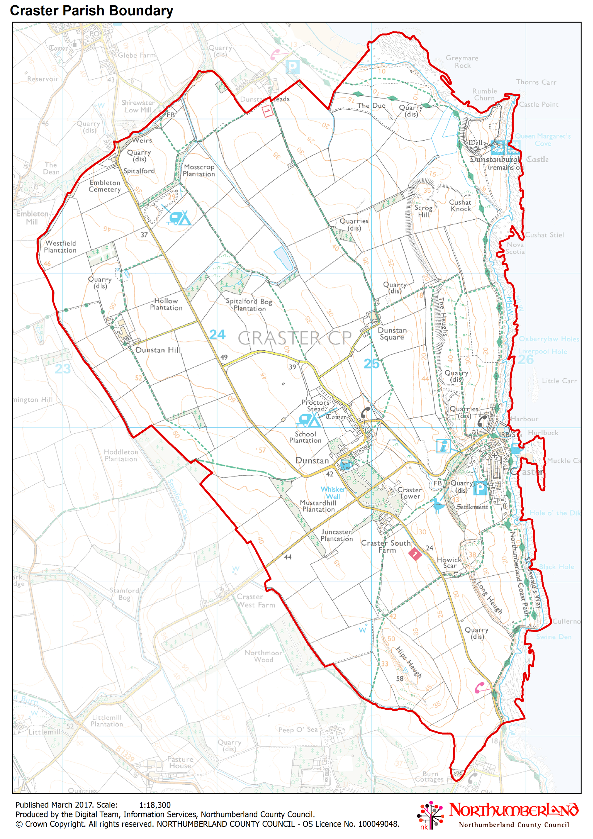 Craster is a small fishing village nestled on the Northumberland coastline, renowned for its signature smoked kipper dish and beautiful basaltic cliffs. It is within the Northumberland Coast Area of Outstanding Natural Beauty.