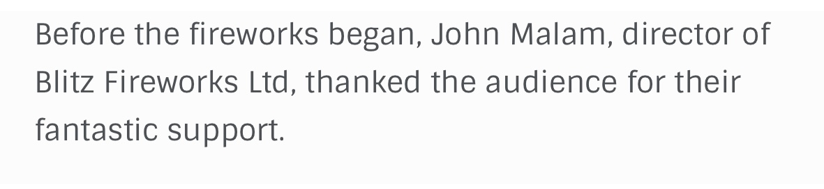 The display is set to music with the pyrotechnics being fired too and adding to the magical atmosphere.