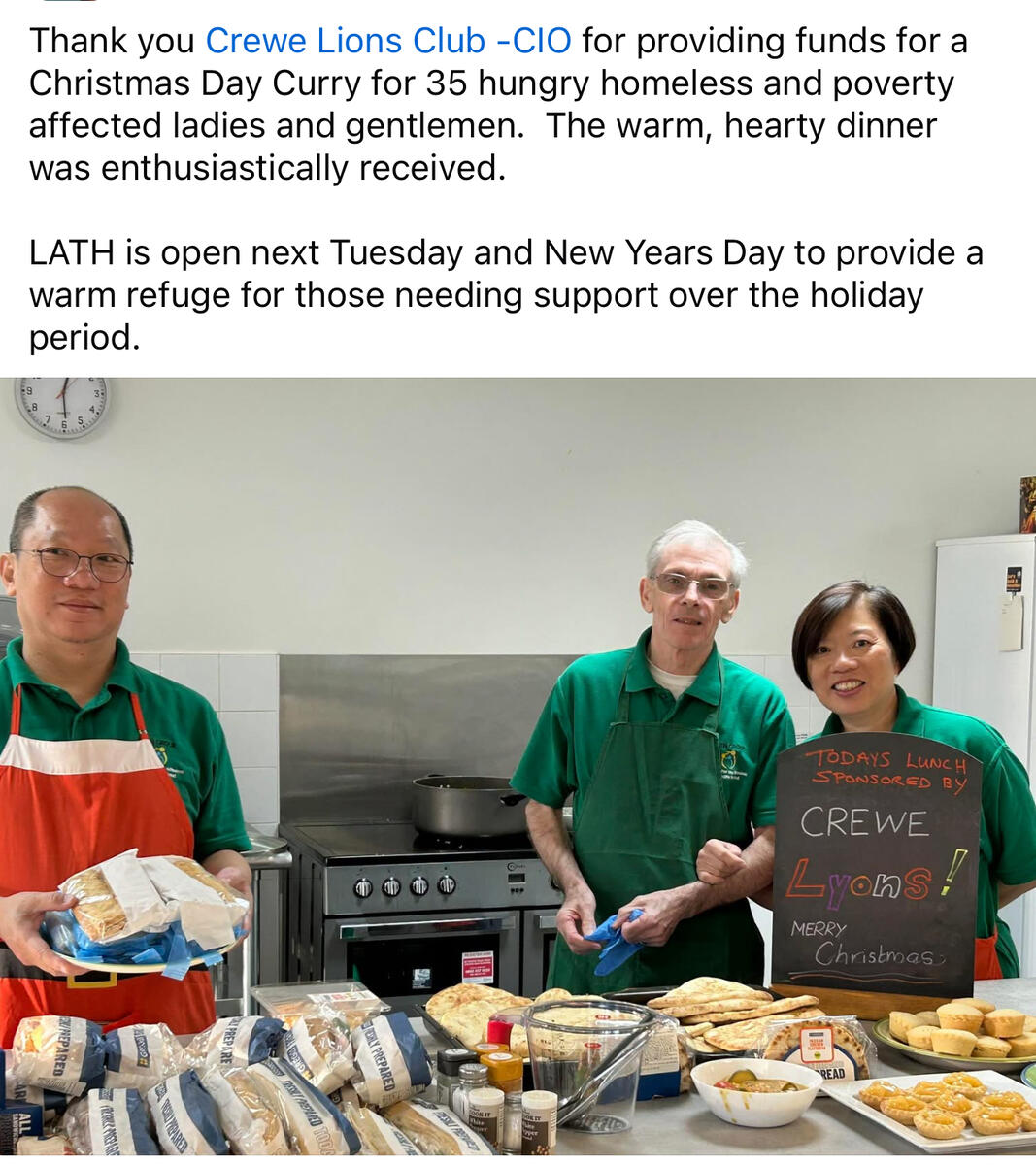Lion President Deb went out and about Christmas Day working with LATH
