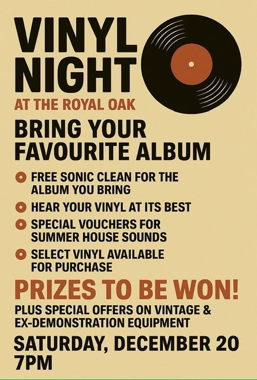20th December: VINYL NIGHT @ The Royal Oak from 7pm (bring your vinyl record to hear them played)