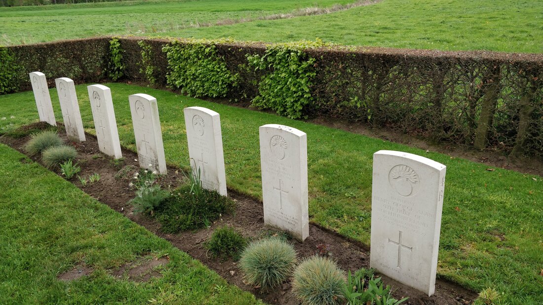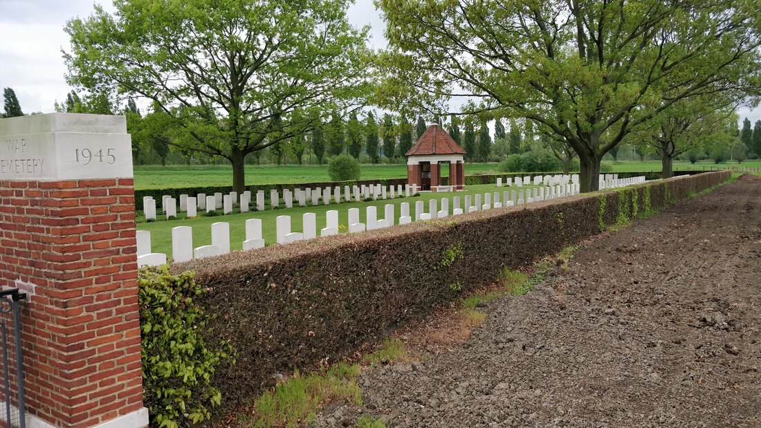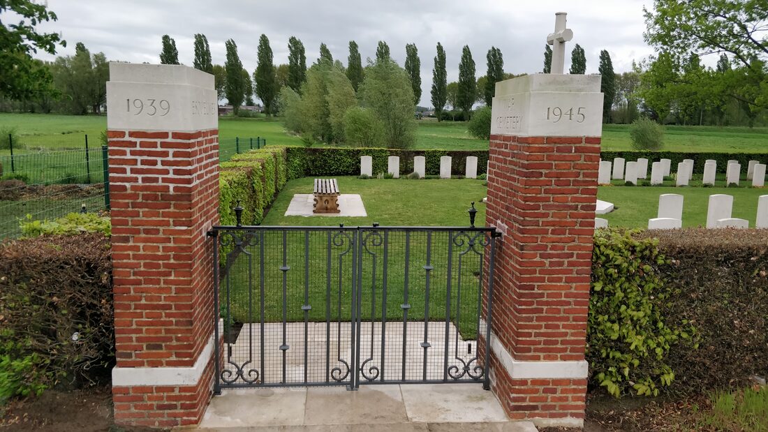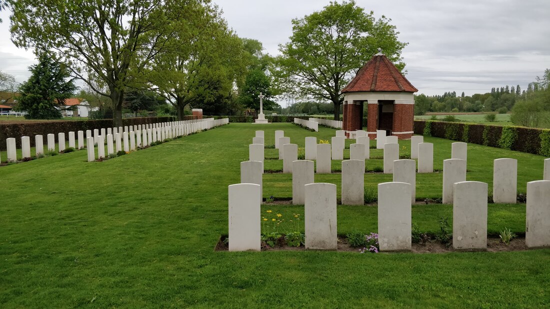 Those buried in Esquelmes War Cemetery died in defending the line of the River Scheldt; the Germans attempted to cross the river near Esquelmes during the morning of 21 May, but were repulsed after heavy fighting. They eventually crossed on 23 May, when the British Expeditionary Force withdrew to the Gort Line.