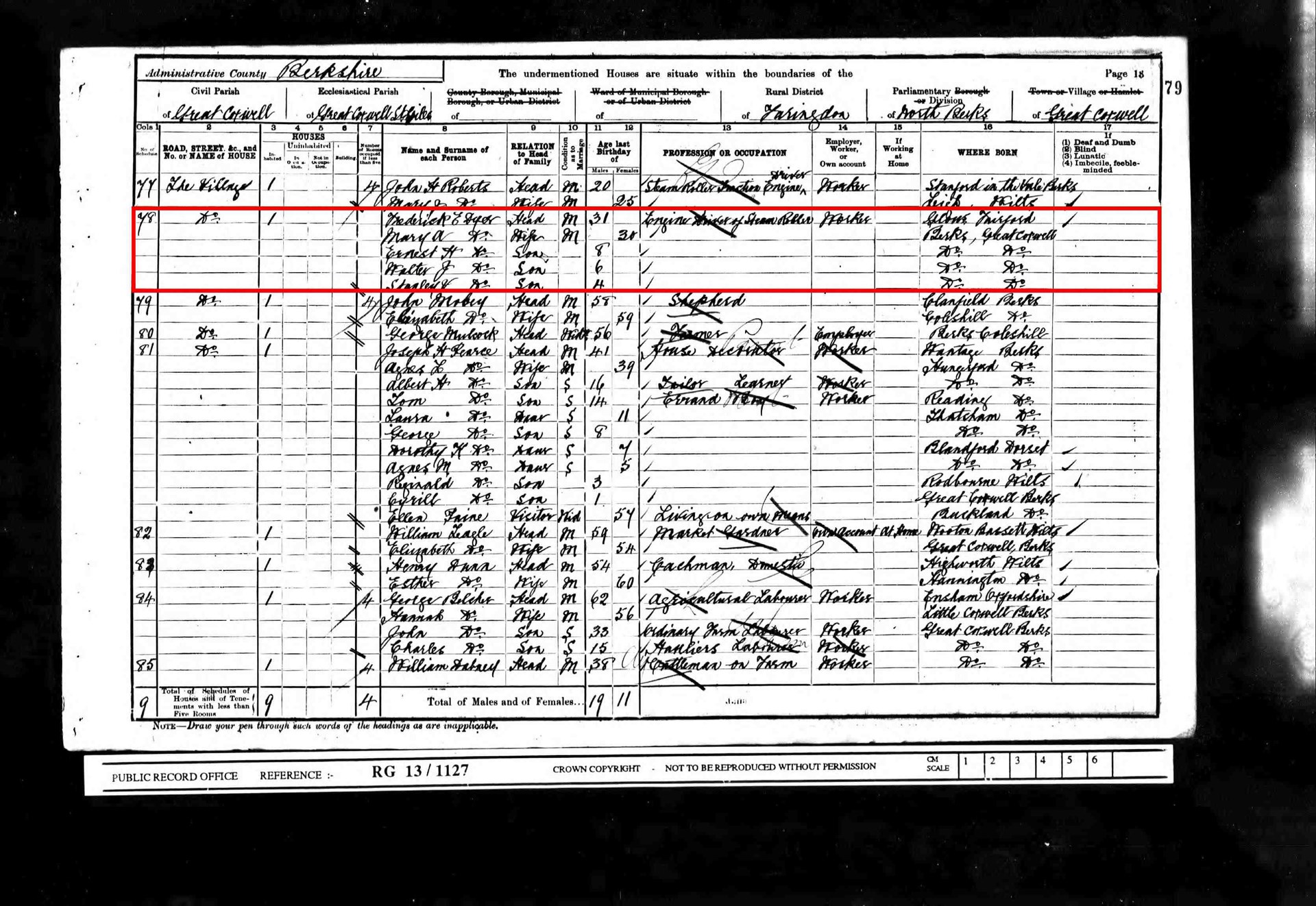 His mother Mary Ann (Mulcock) and father Frederick married in Great Coxwell and are buried in the churchyard, they had 3 other children: