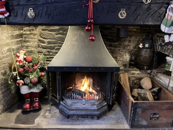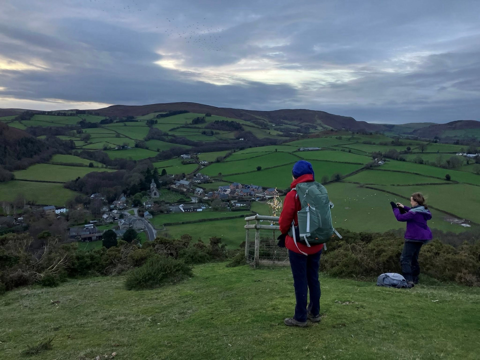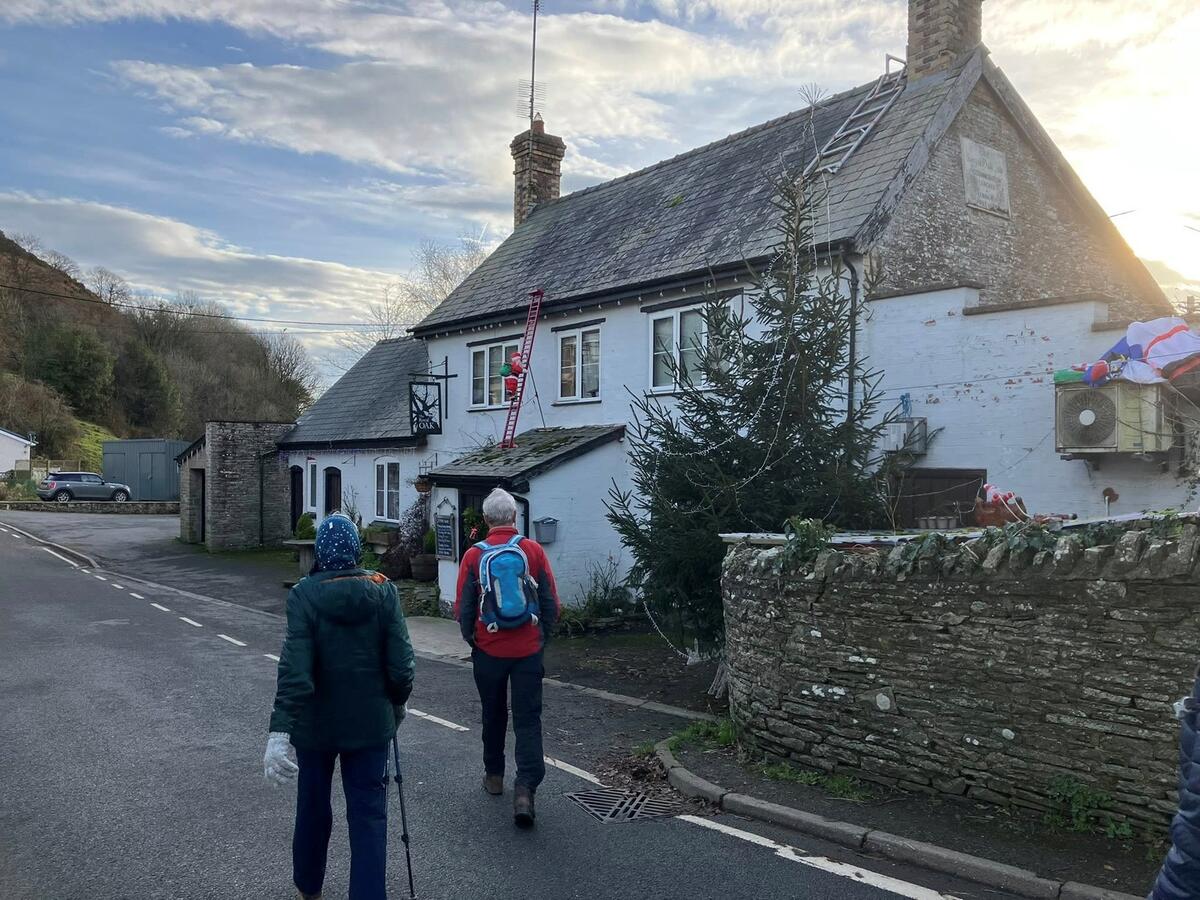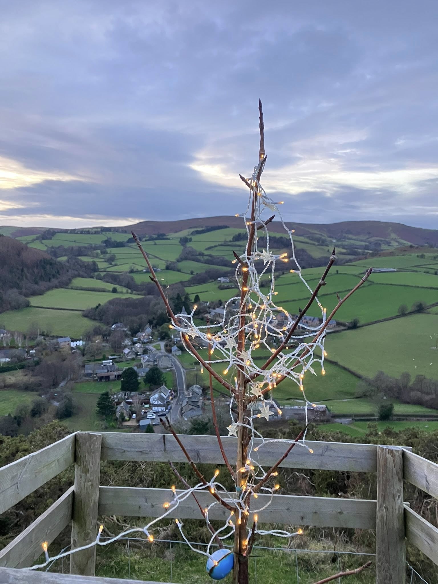A fantastic breakfast start at The Royal Oak in Gladestry. The breakfast meet before Christmas is a great annual tradition. Breakfast was followed by a walk up and over Hergest Ridge and returning via Huntington. Lovely final views overlooking Gladestry with a Christmas star…