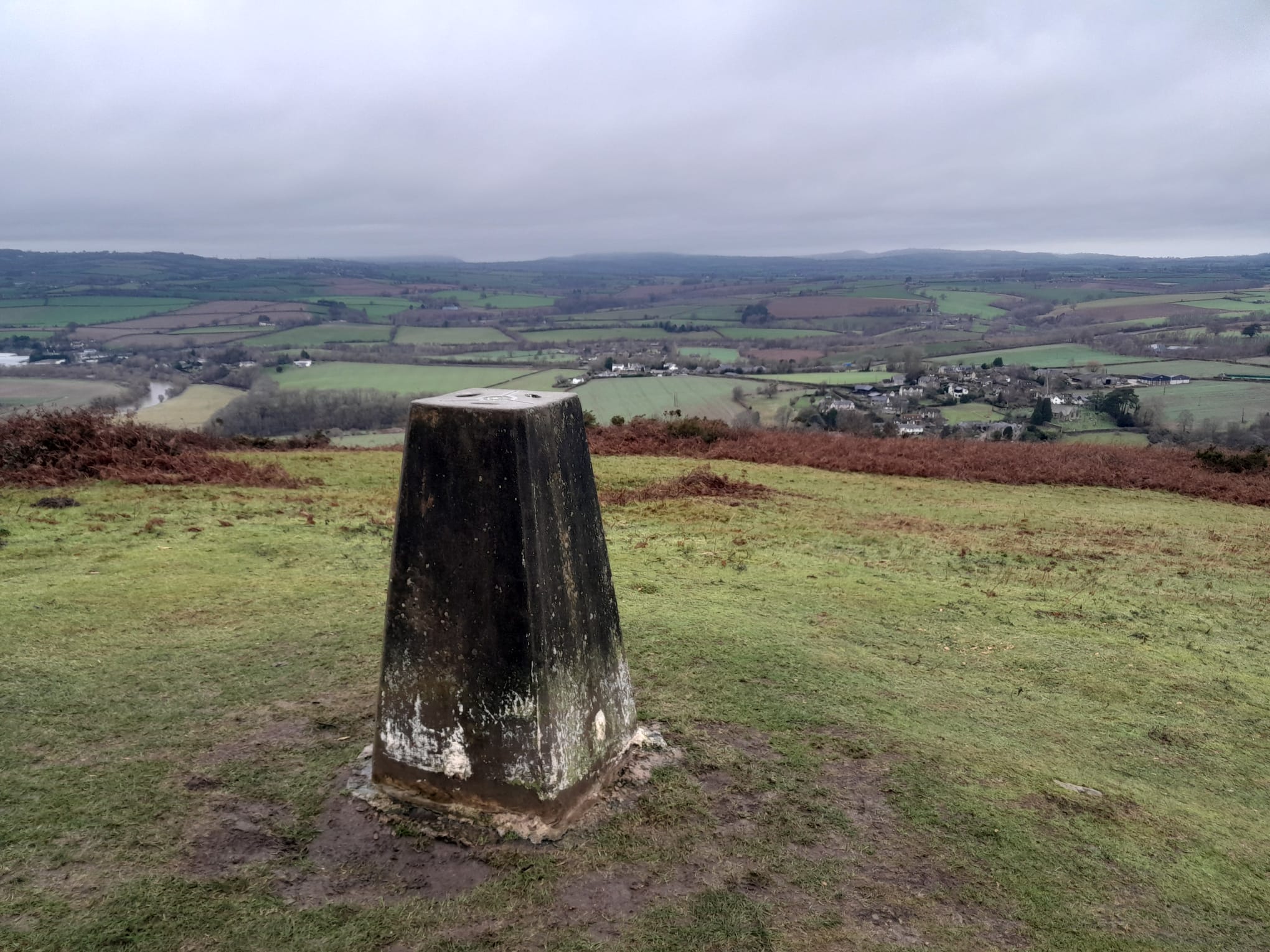 A loop from Goodrich to Kerne Bridge and along the River Wye to the south end of Coppet Hill which was followed through the woods to the trig pillar and back to Goodrich for refreshments at The Hostelrie