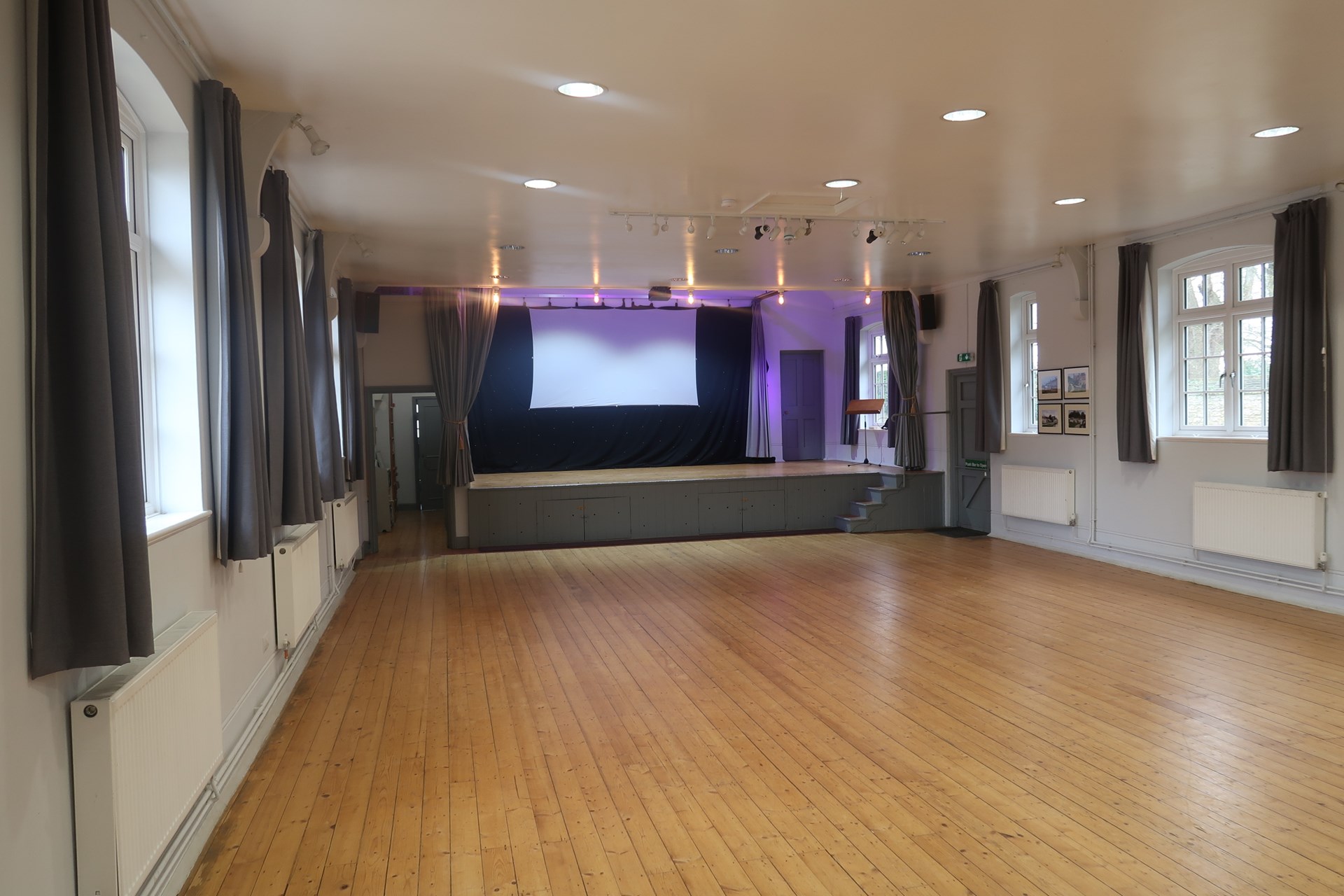 The Hall is well lit with a designated bar and good storage space for chairs and tables so that they are able to be either in use or hidden from view.