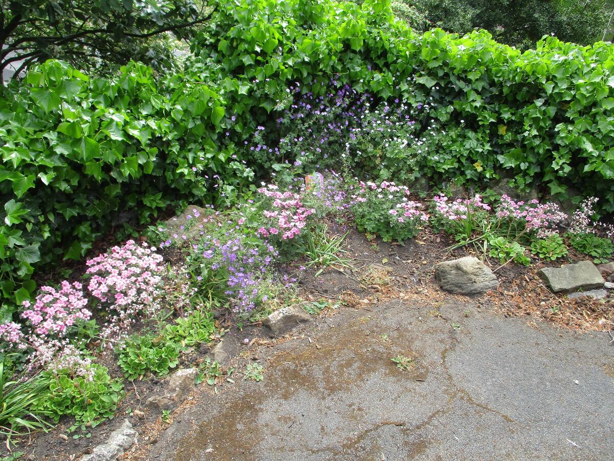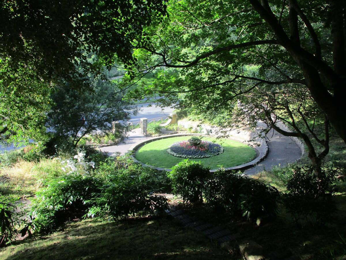 As the tree canopy closes in, the gardens become a quiet sheltered space. The spring flowers die back but pockets of red campion, cow parsley and Welsh poppy linger on well into June. However colour is largely restricted to the council maintained beds alongside Valley Road and the flower beds maintained by the Friends of Valley Gardens.