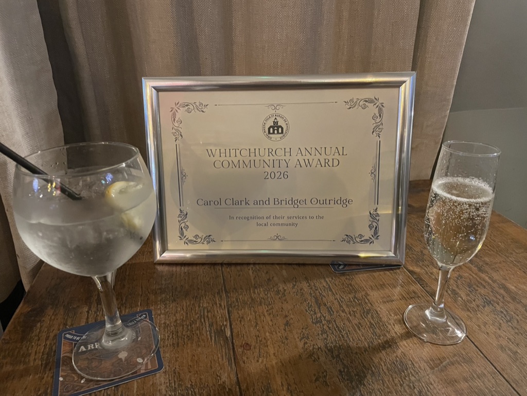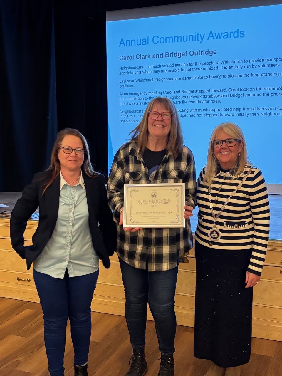 Carol Clark and Bridget Outridge received a Whitchurch Annual Community Award last night which was presented by the Mayor of Whitchurch, Tracey Woodruff.